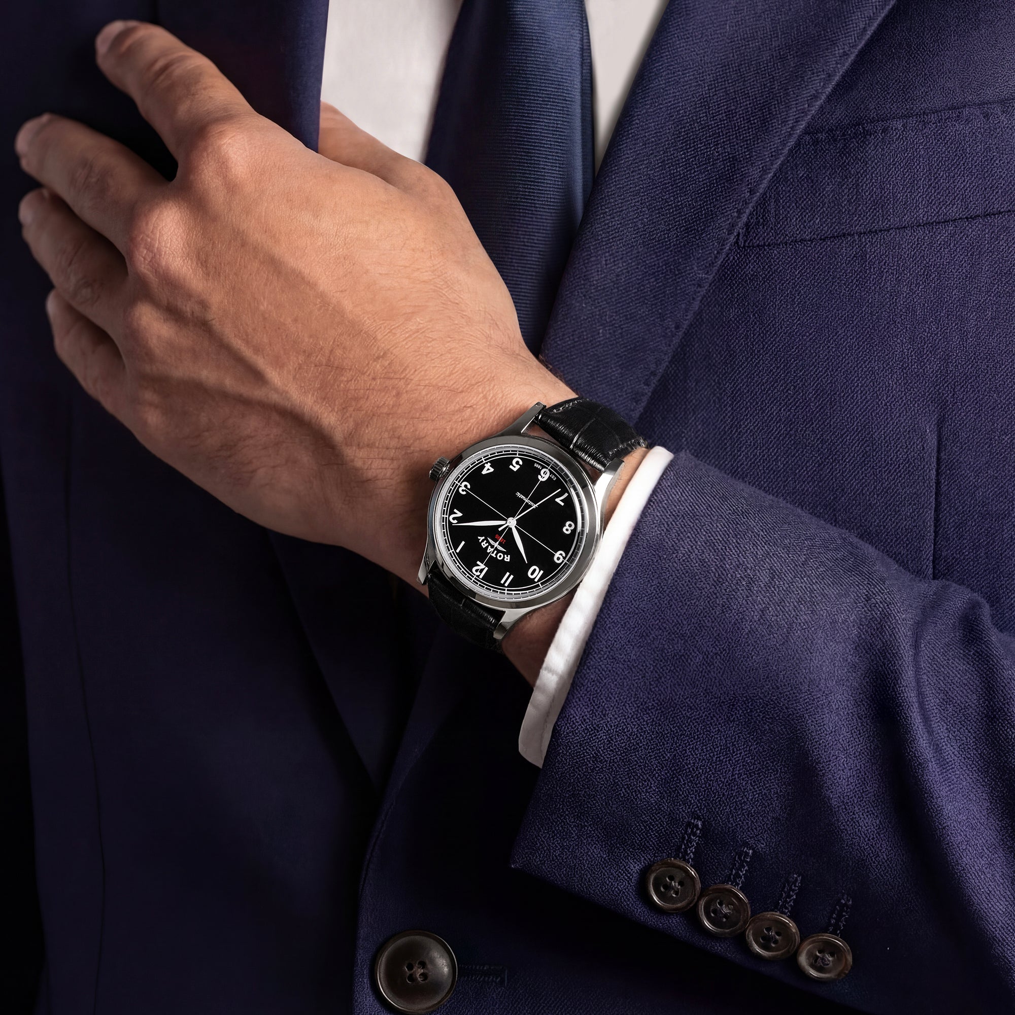 This 1895 reissue brings a faithful, understated revival of a Rotary archive design. Its 40mm 304L stainless steel case and extended 49.5mm lug-to-lug give it a traditional wrist presence, while the black crosshair dial stays true to the original aesthetic - clean, balanced, and built for clarity. Mineral bubble glass reinforces the vintage character with its subtle distortion and curved profile.