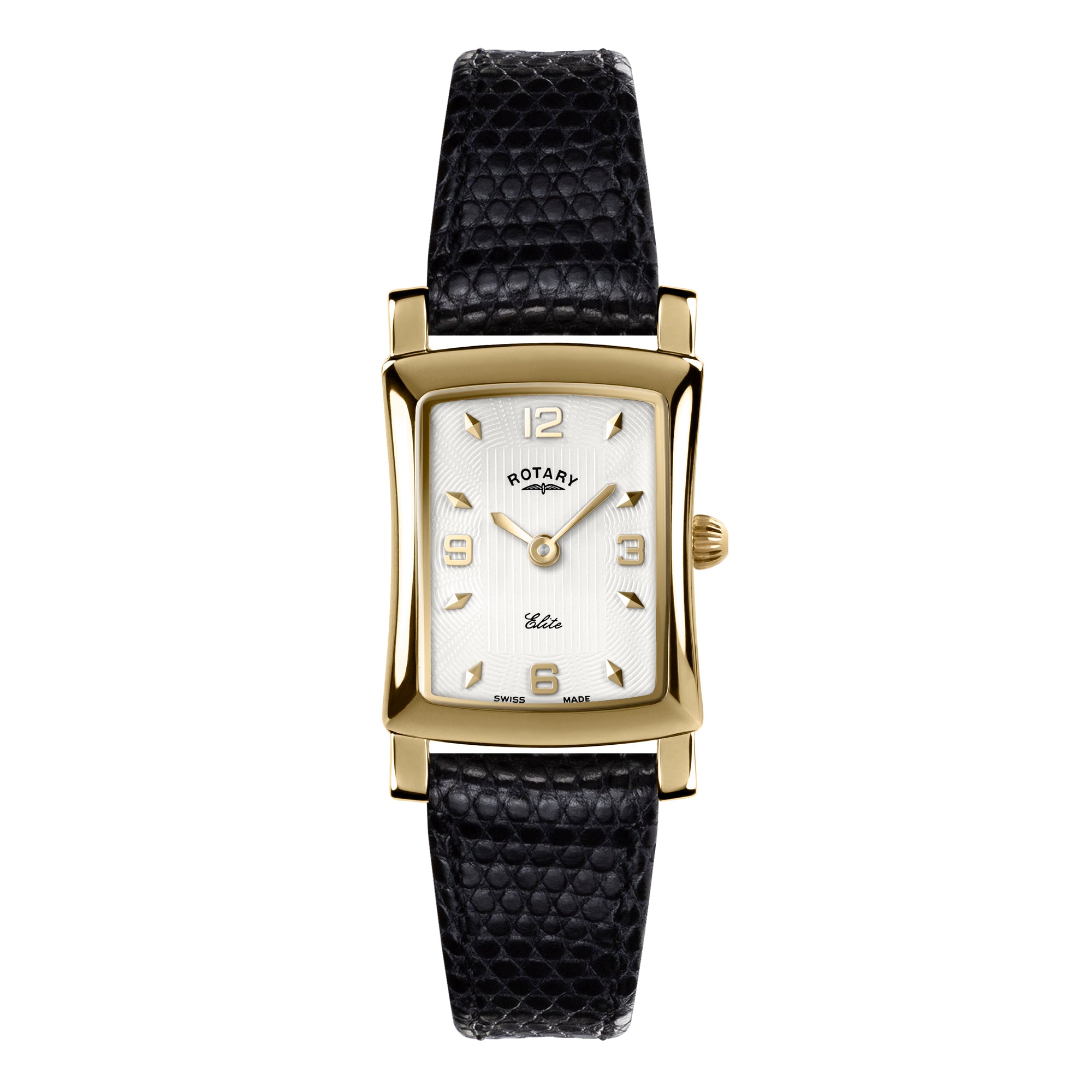 This ladies Rotary Elite Swiss made watch embodies the charm and timeless design synonymous with Rotary. The curved 19mm gold PVD case measures just 6.6mm thin with a 31mm lug to lug length, giving the watch delicate proportions and wearability.