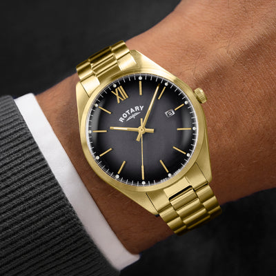 Its 39mm gold PVD case and 3-link 18mm bracelet perfectly frames the deep black dial. With 50M of water resistance and a date window neatly positioned at 3 o’clock, balancing form with function.