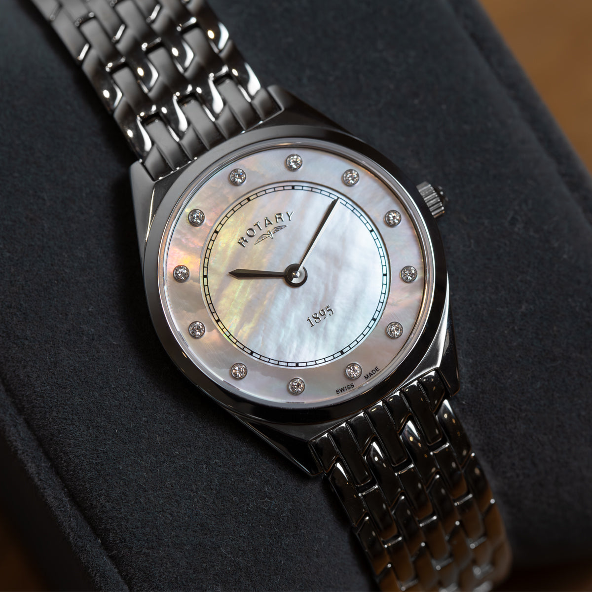 Synonymous with classic sophistication, this Swiss Made Rotary Ultra Slim ladies watch is the perfect combination of style and function.